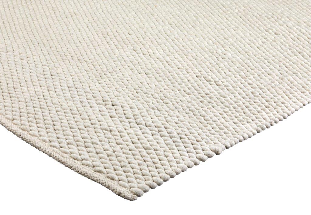 In een lichte zithoek voegt dit handgeweven vloerkleed warmte toe. De mix van katoen, wol en polyester voelt comfortabel en is duurzaam. Het lichte ivoor toont wel snel vlekken. Ideaal voor rustige woonkamers. Een degelijke keuze voor wie stijl combineert met eenvoud.