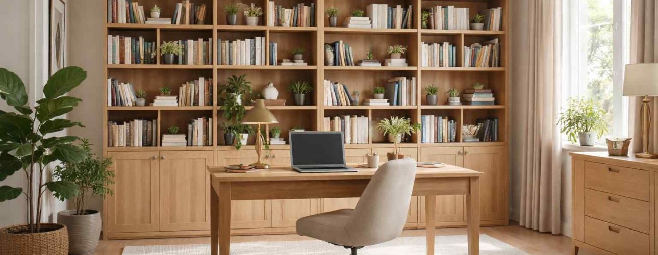 Er zijn veel opties in kleur en indeling. Bedenk vooraf hoe je wilt opbergen: alleen boeken, of ook documenten, kabels en voorraad? Voor opbergen van boeken zijn verstelbare planken ideaal, zodat je later kunt aanpassen. Zo blijft het geheel stijlvol en praktisch, ook wanneer je verzameling groeit.