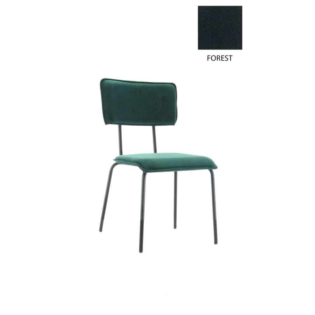 Steunende rondingen, een solide frame en een zitvlak dat je meteen verwelkomt. Deze eetkamerstoel koppelt duurzame Earth-velvet bekleding (gerecycled PET) aan een zwart gepoedercoat stalen onderstel voor dagelijks comfort met een rustige, moderne uitstraling.