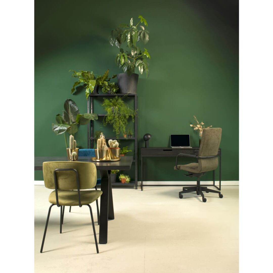 Ken je die stoel die iedereen als eerste kiest? Dat is deze. Zachte velvet in een warme Earth-tint en een uitgebalanceerd zitprofiel maken elke maaltijd relaxter.