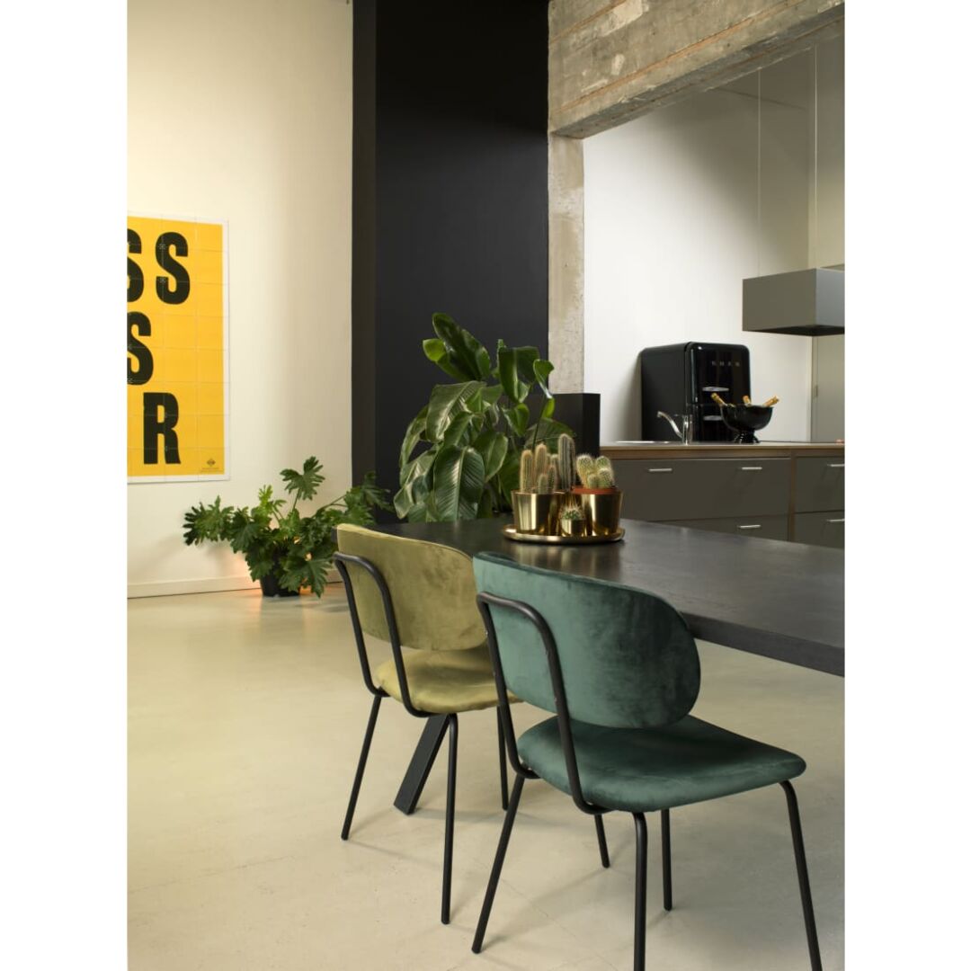 Deze eetkamerstoel komt goed tot zijn recht in een modern ingerichte eetkamer. De velvet bekleding voelt zacht aan en is slijtvast, terwijl het metalen onderstel stabiliteit biedt. Minder geschikt voor kleine ruimtes door de brede zitting. Aanrader voor stijlbewuste gebruikers.