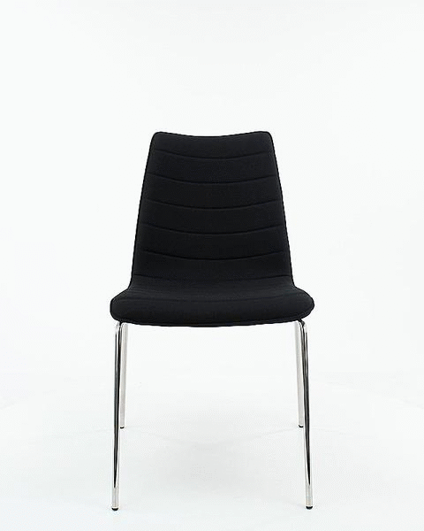 Strakke lijnen. Eerlijke materialen. Zitcomfort dat je graag aan tafel houdt. Deze eetkamerstoel in zwarte mirage-stof met subtiele stiknaden en een verchroomd 4-poots onderstel voelt licht, stabiel en klaar voor lange avonden.